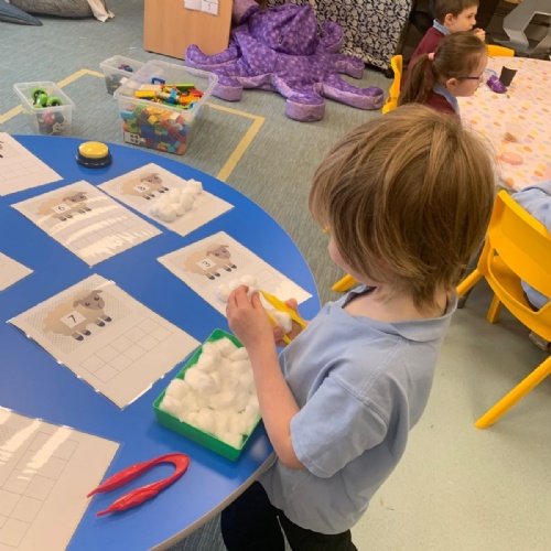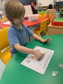 Today was all about developing our hand muscles, a super start for beautiful handwriting! We are using clothes pegs to put spikes on hedgehogs. We are also using our Numeracy skills to count within 10!