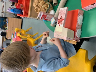 We have used junk materials to make vehicles, aren't they amazing? The boxes from Mrs Massey's advent calendar have come in useful again this year!