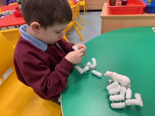 We have been learning about Polar Regions - we have made homes for polar bears at the North Pole. We have used cocktail sticks and packing peanuts. This is another STEM activity.