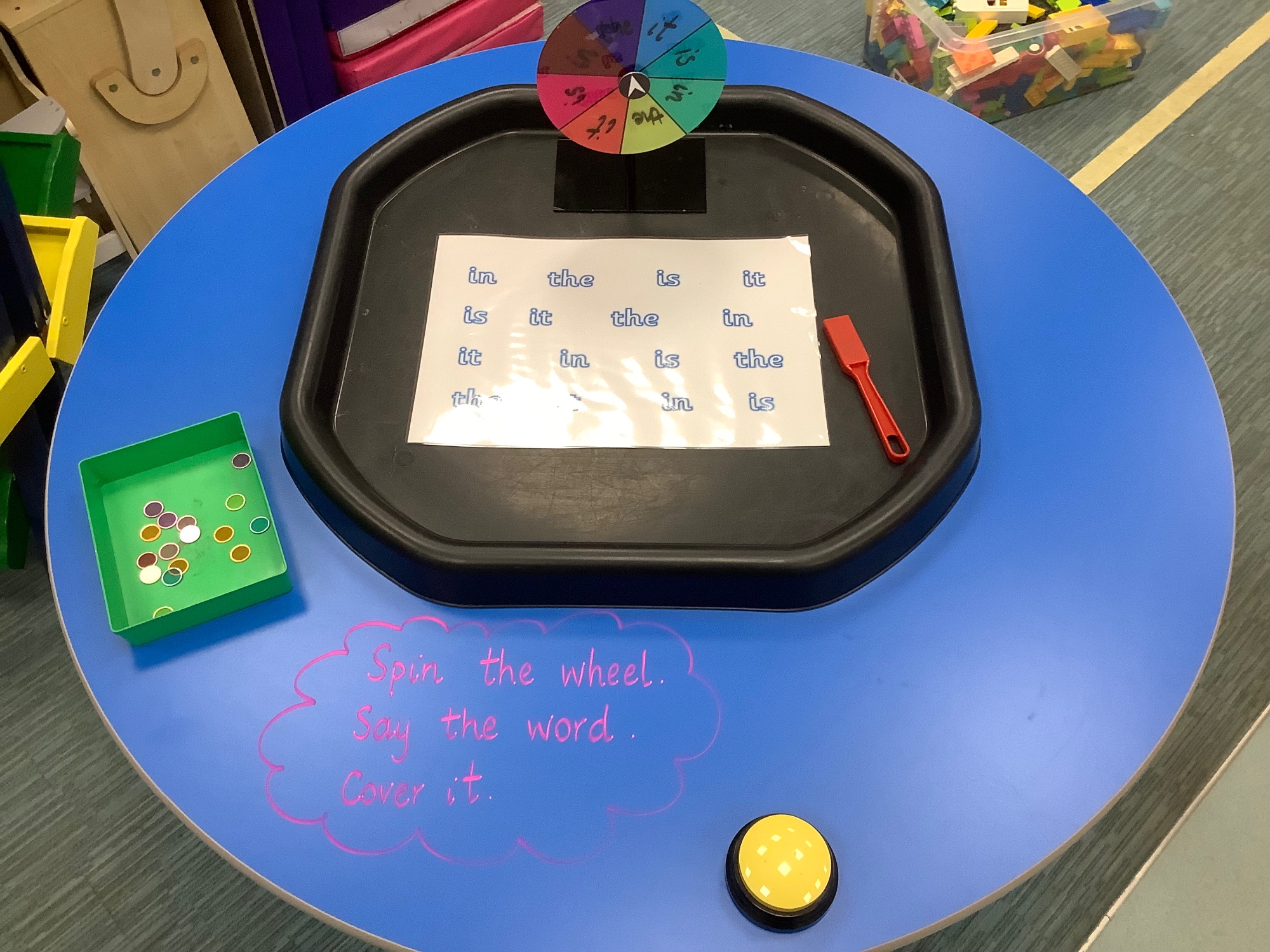 Challenge:- Spin the wheel, say the word and put a counter over that word on the page.