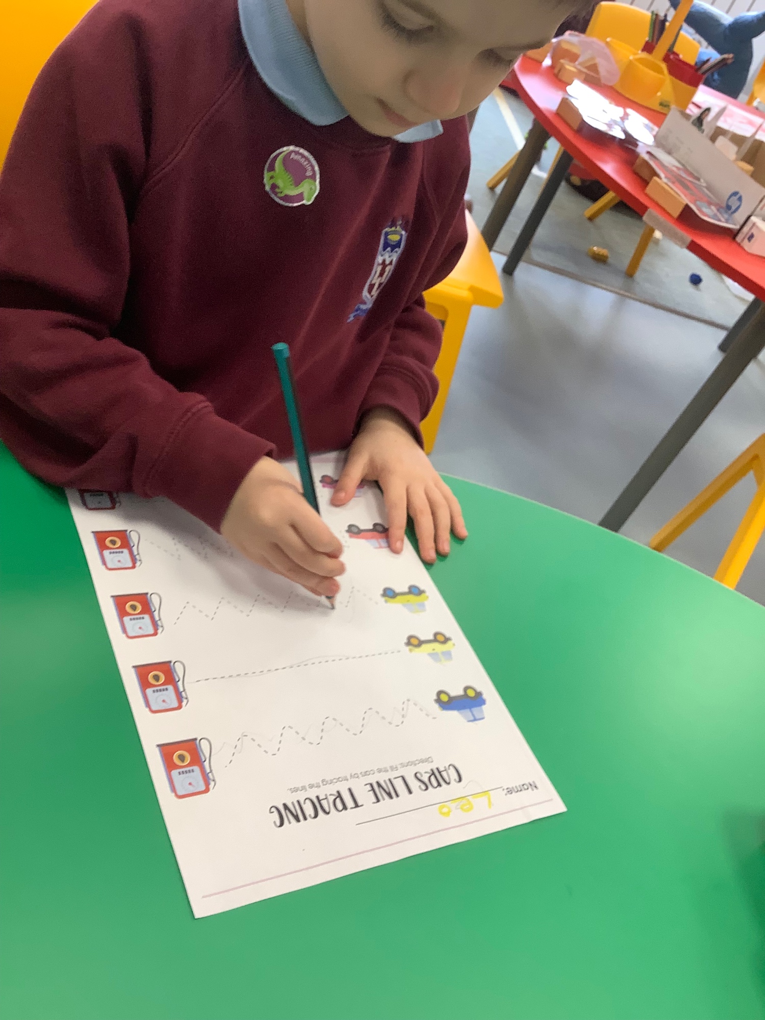 We work very hard to develop our fine motor skills in our classroom. We are helping the vehicles get to the petrol pumps with this activity.