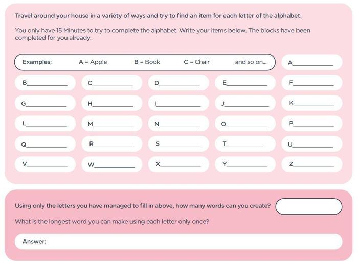 It's your job to find an object that begins with each letter of the alphabet and fill it in on the grid below!
