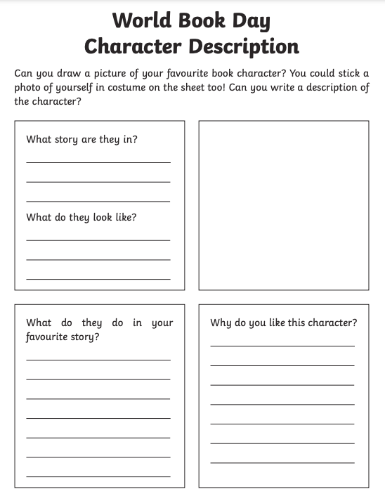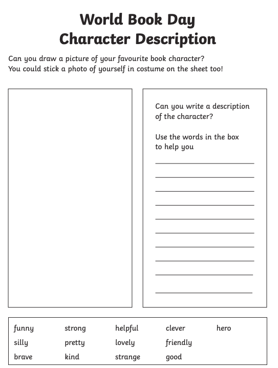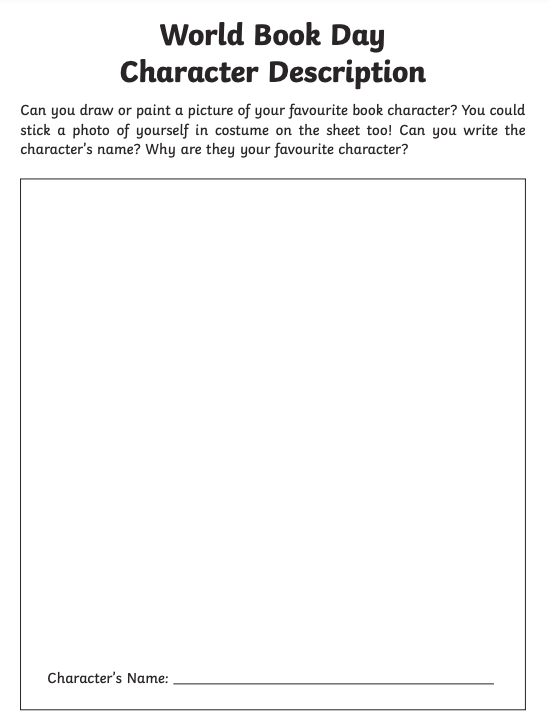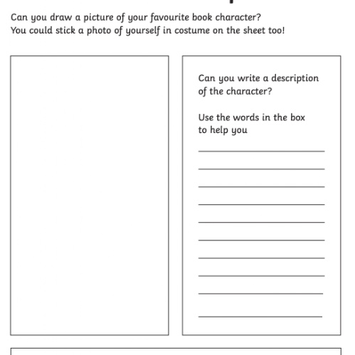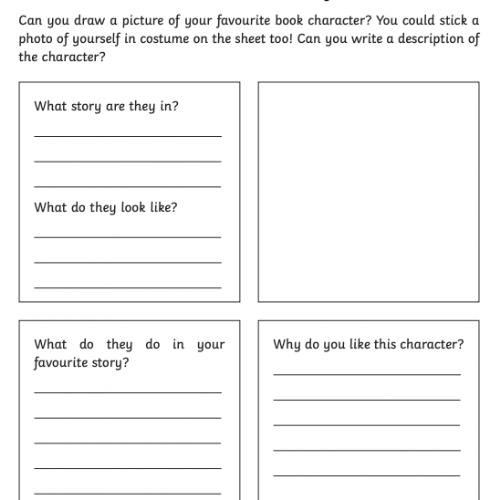 Choose a favourite character from a novel. Draw a colourful picture of your chosen character. Why do you like this character? Write about the part they play in the story.