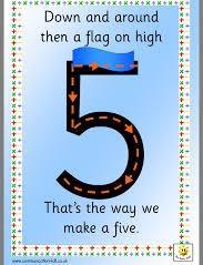 1. Can you have a go at writing the number 5? Here is the number rhyme to remind you how to do it.