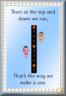 - Can you have a go at writing the number 1. You can use different pencils and pens to do this. Have a think about your number rhymes to help you remember how to write this number.
