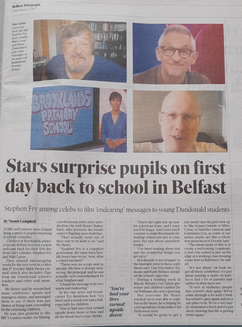Welcome to the new school year at Brooklands Primary & Nursery School, in Dundonald, east Belfast...and it's not just us that are excited...we have some NEW famous friends who'd like to say hello as well!