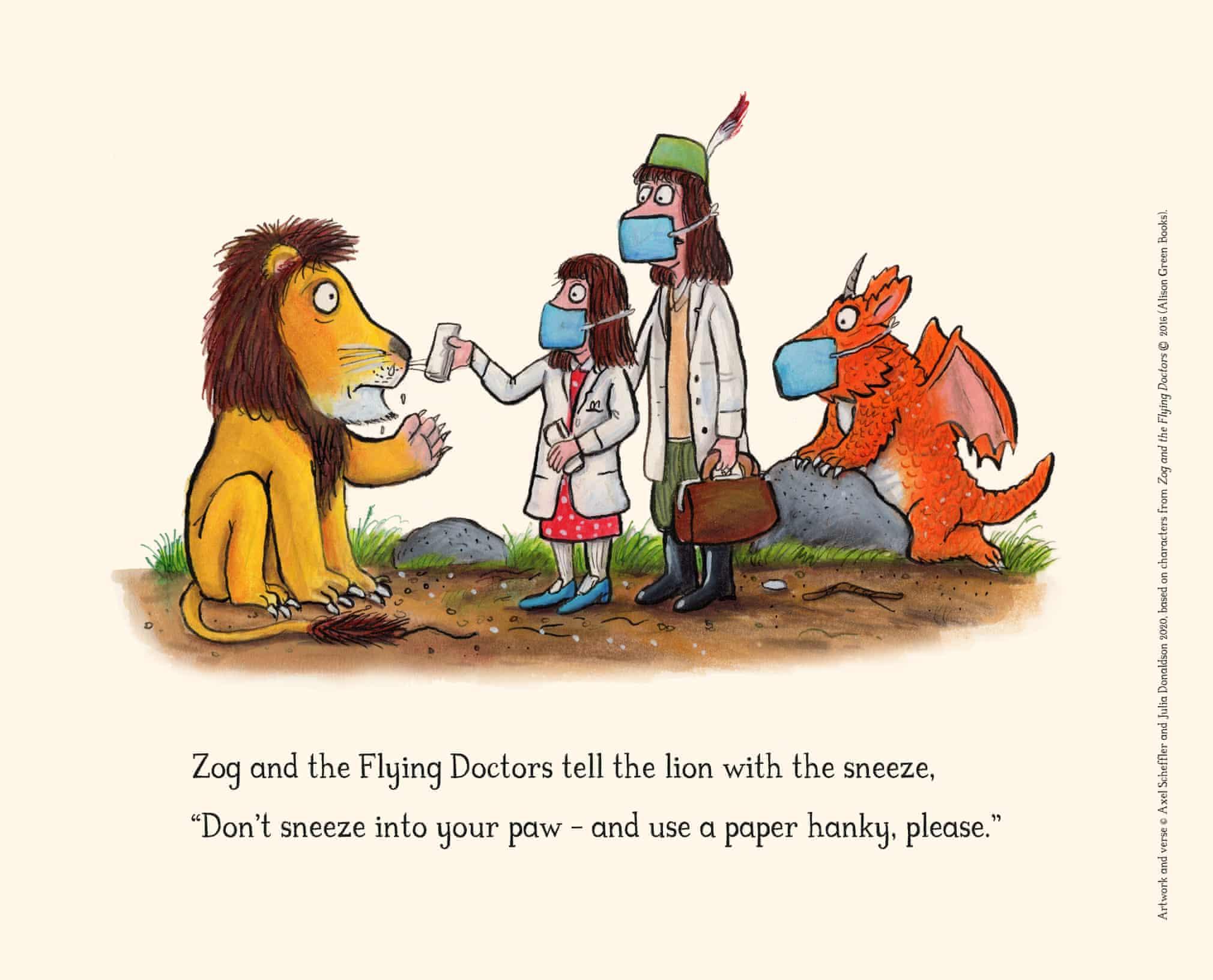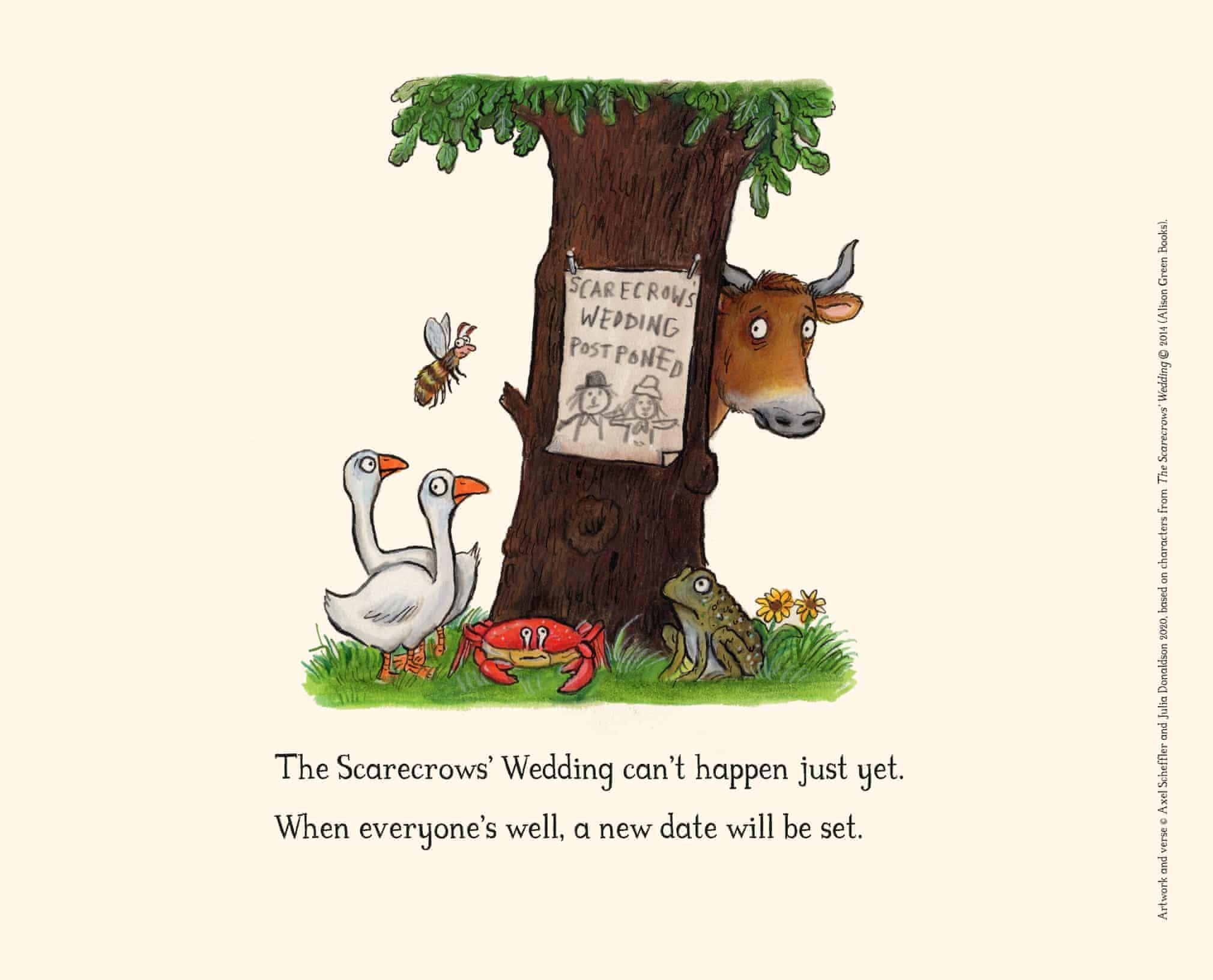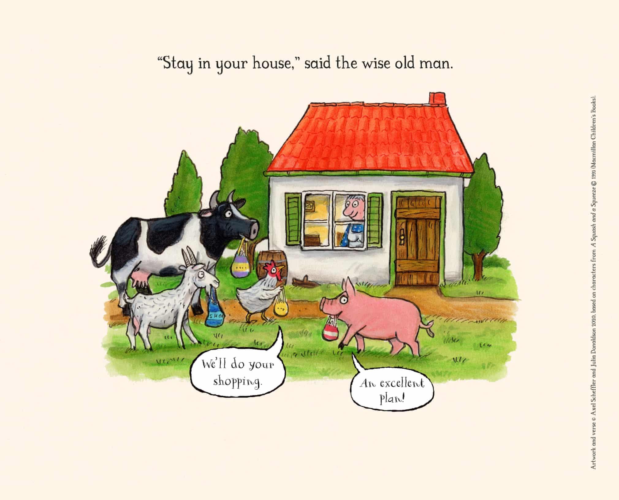 Guardian Newspaper examples: https://www.theguardian.com/books/gallery/2020/apr/04/gruffalo-axel-scheffler-and-julia-donaldsons-coronavirus-cartoons