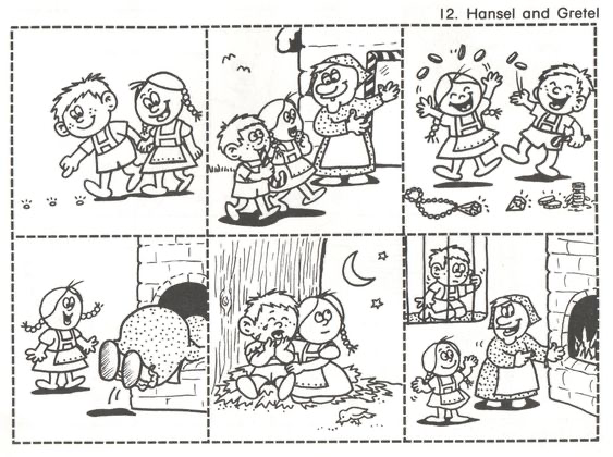 Can you sequence the pictures and retell the story of Hansel and Gretel to your grown up?