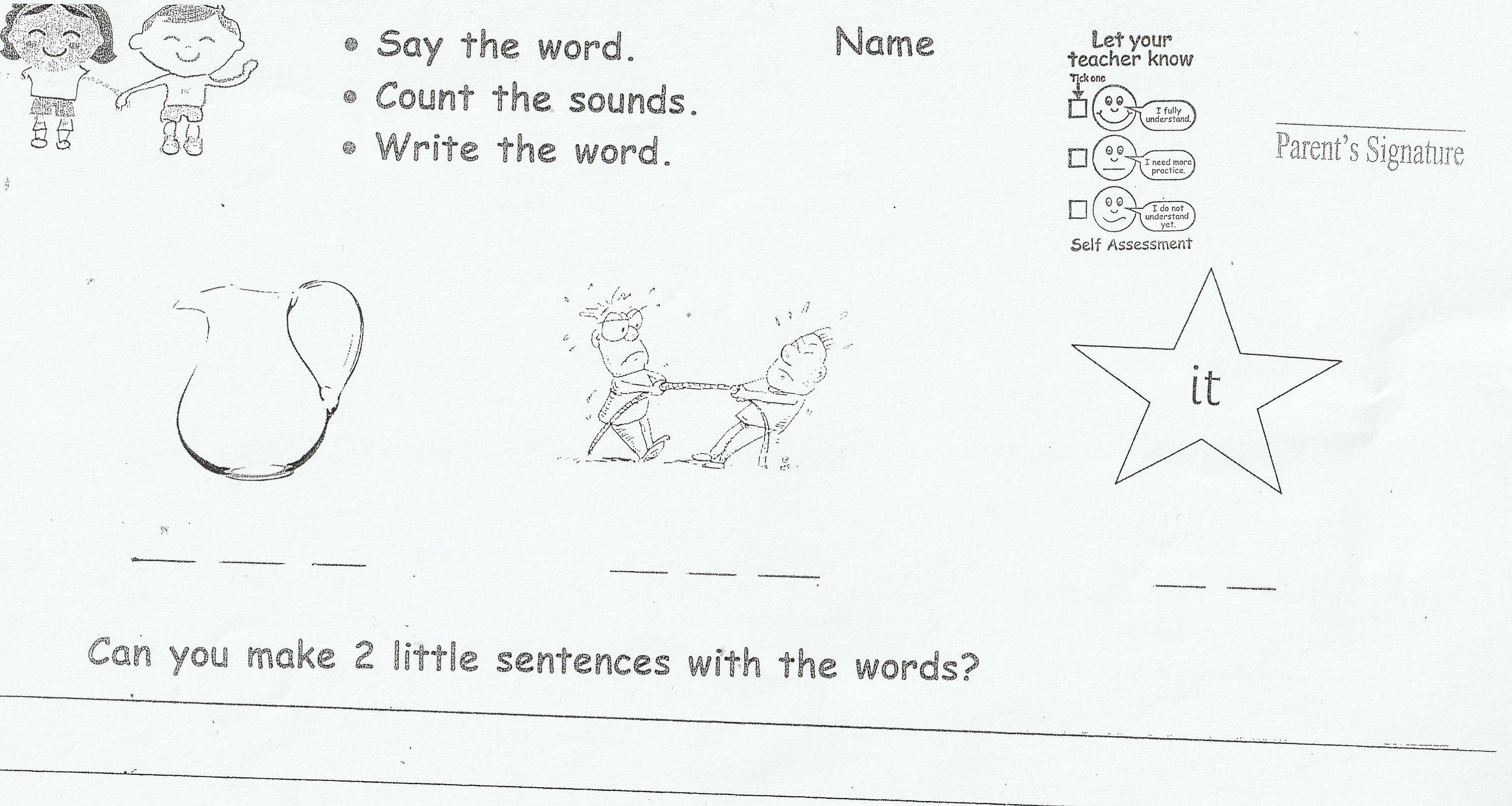 Can you use your spellings and tricky word to make 2 little sentences? Remember to have a go all by yourself and then show it to an adult.